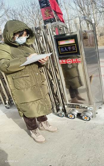 李蕾,生物科学专业2018级学生,2020年11月加入中国共产党,家住河北省任丘市郭家村。李蕾同学在去年武汉疫情爆发时就作为一名志愿者参与疫情防控工作,今年河北疫情形势严峻,她又义无反顾的加入志愿者的队伍。根据安排,她主要负责在村口执勤,对外来人员进行排查及体温检测,严格控制外地人员及车辆的进入,最大限度的限制人员流动,把牢“入口关”,作好村子的守护者。